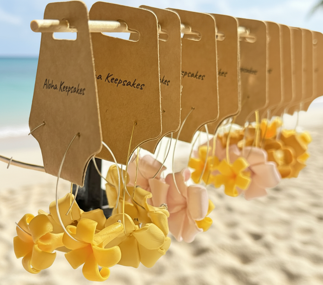 Get ready to show off your island home-spun style with our Puakenikeni Dangle earrings! Handcrafted from lightweight polymer clay, these earrings are perfect for adding a playful touch to any outfit. (Note: Unlike your jokes, these won't weigh you down.)